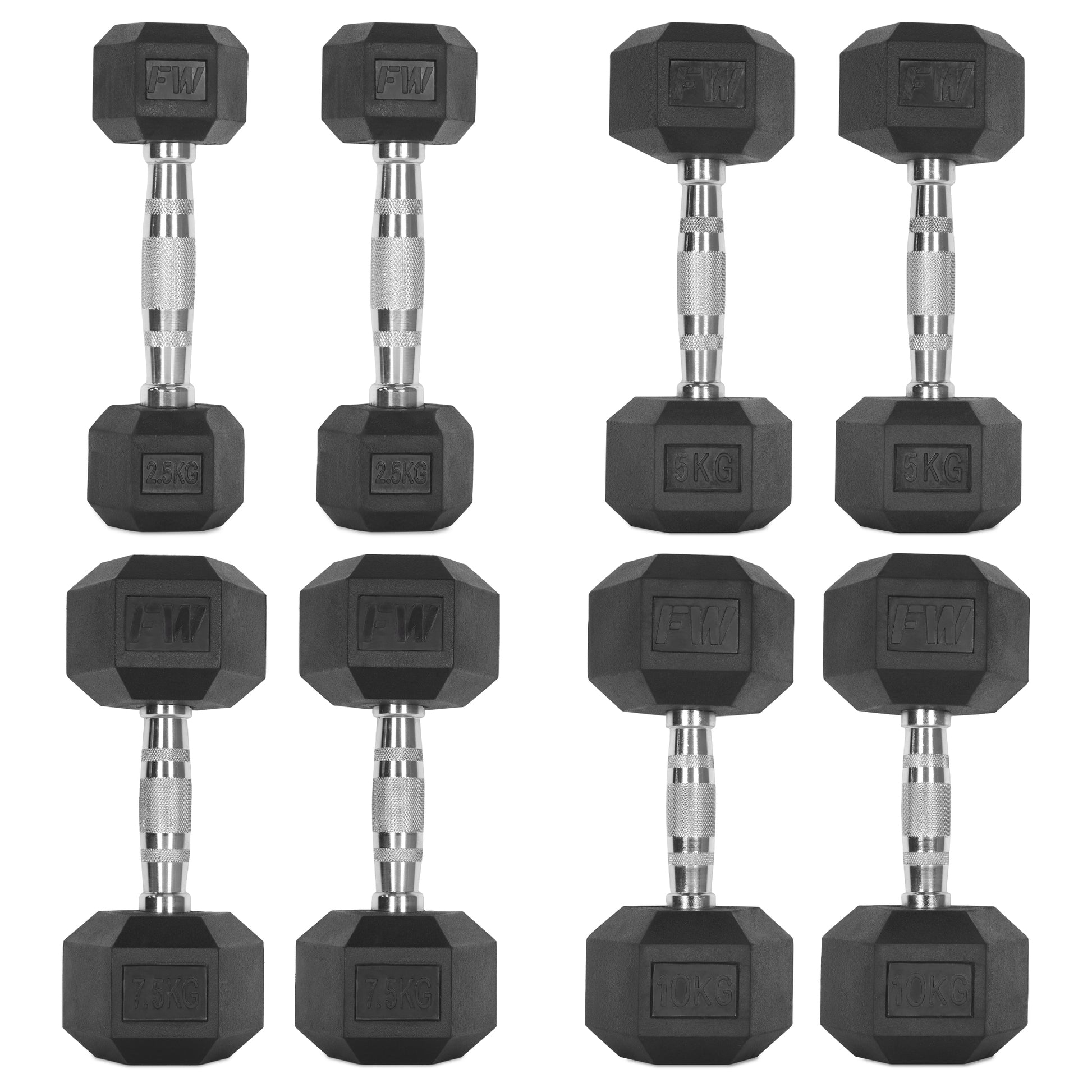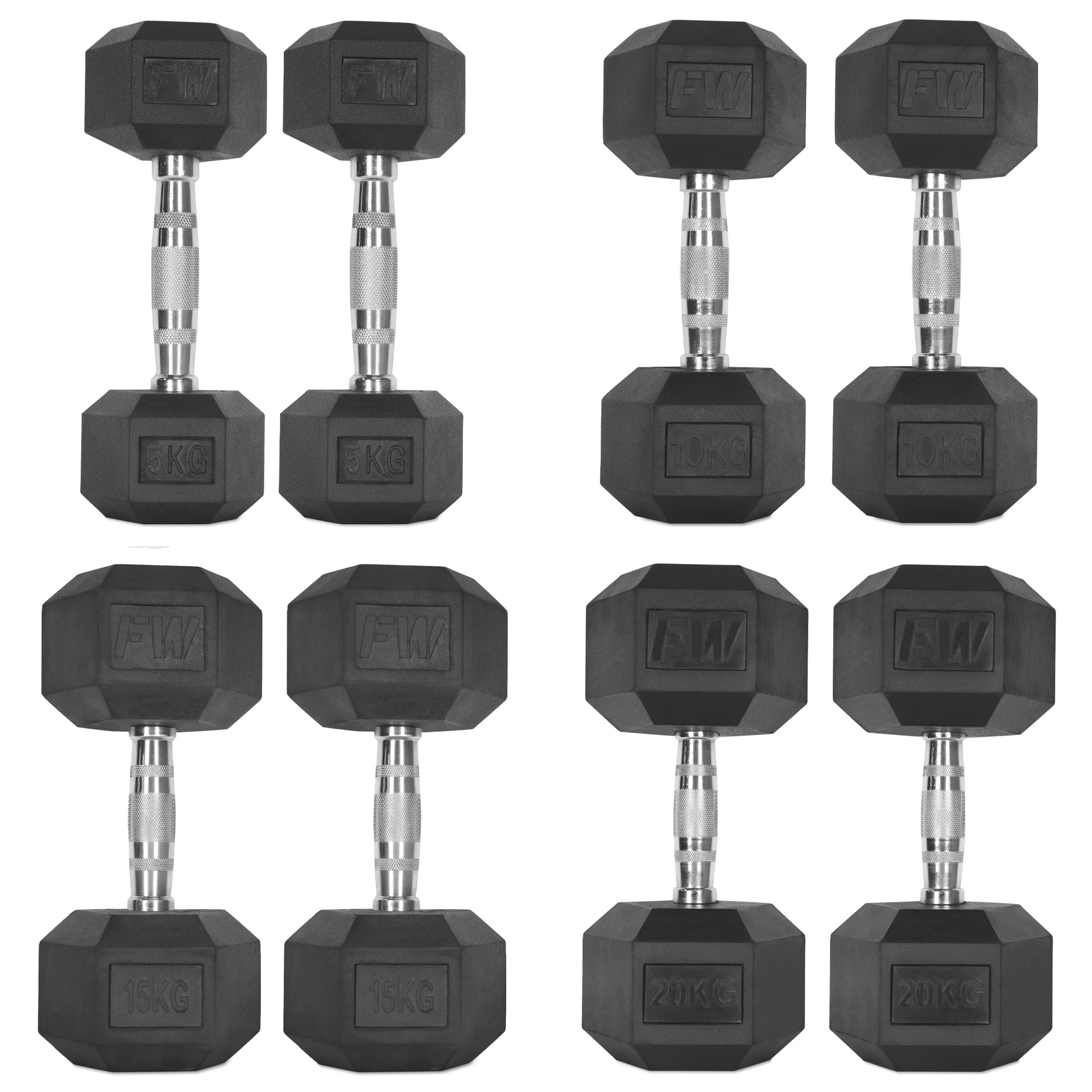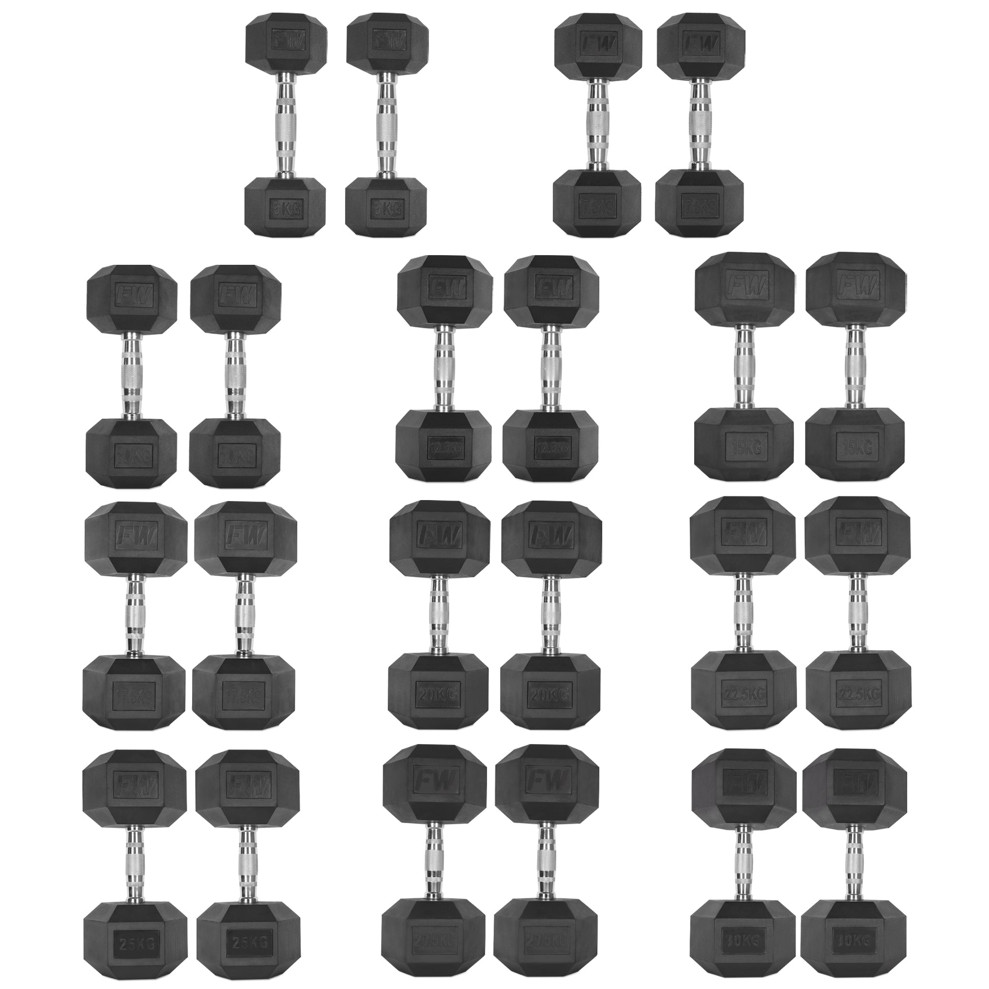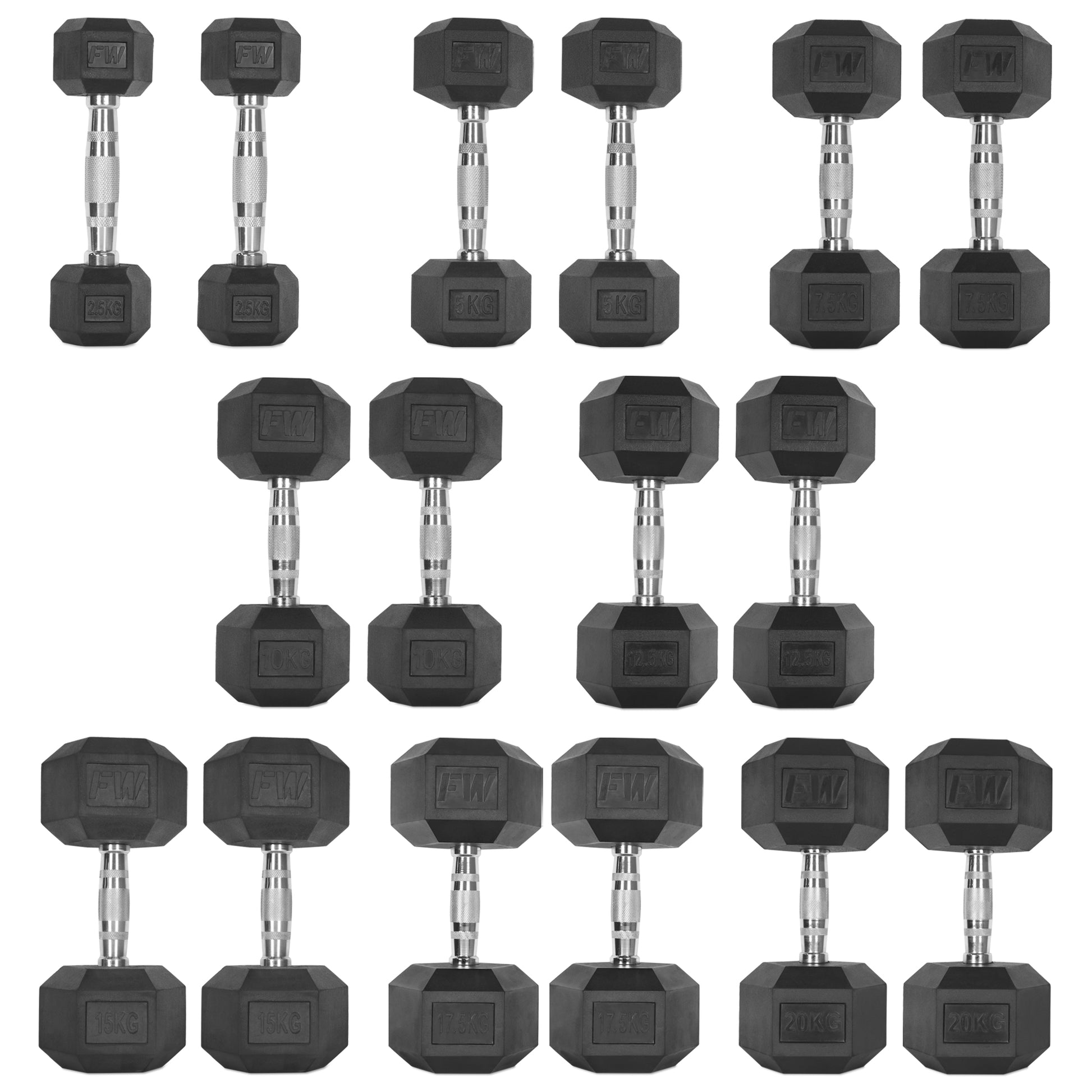 Our Rubber Hex Dumbbells are perfect for working all muscle groups to build strength, size and definition. They feature knurled steel grips for a secure hold. The protective, rubberised end is designed for durability and protection. The hexagonal ends have been shaped to stop weights from rolling.