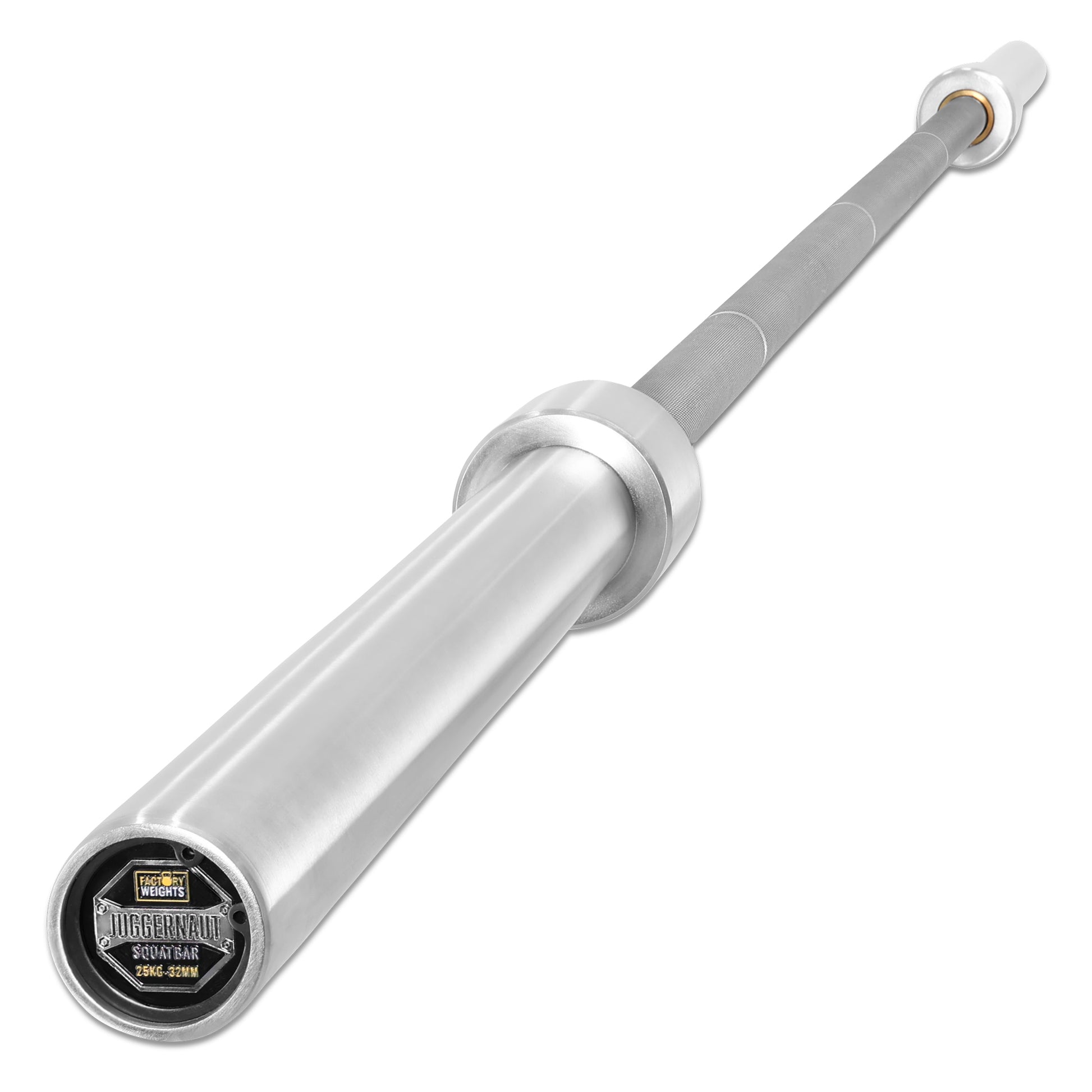 The Factory Weights Juggernaut Squat Bar is a specially designed bar to enhance the users squat experience. The 32mm shaft means the bar won't flex/whip as much as a standard barbell under heavy loads. It features an aggressive fully knurled shaft for superior grip. Having worked closely with some of the strongest athletes in the world to develop this barbell the Juggernaut Squat Bar can withstand workouts in the strongest gyms, time and time again.