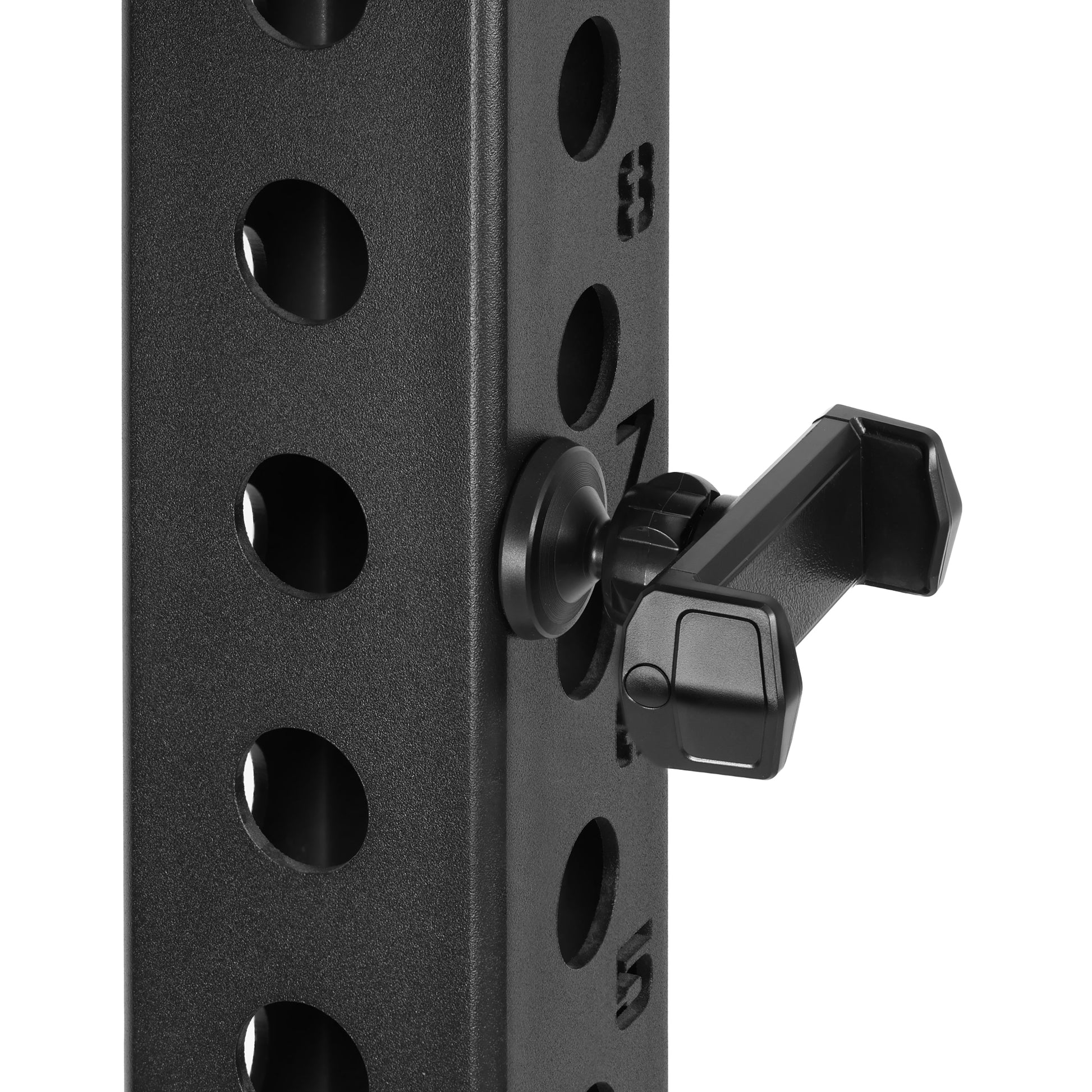 Do you hate it when people walk in-front of your camera or move the bench it's propped up on while you struggle through a new 1RM? How selfish of them! The Factory Weights Magnetic Phone Holder is perfect for you. Simply magnetises to your metal gym rack/bench and place your smartphone between the clamps to hold. Complete with full 360 degree swivel ball socket for easy angle adjustment.