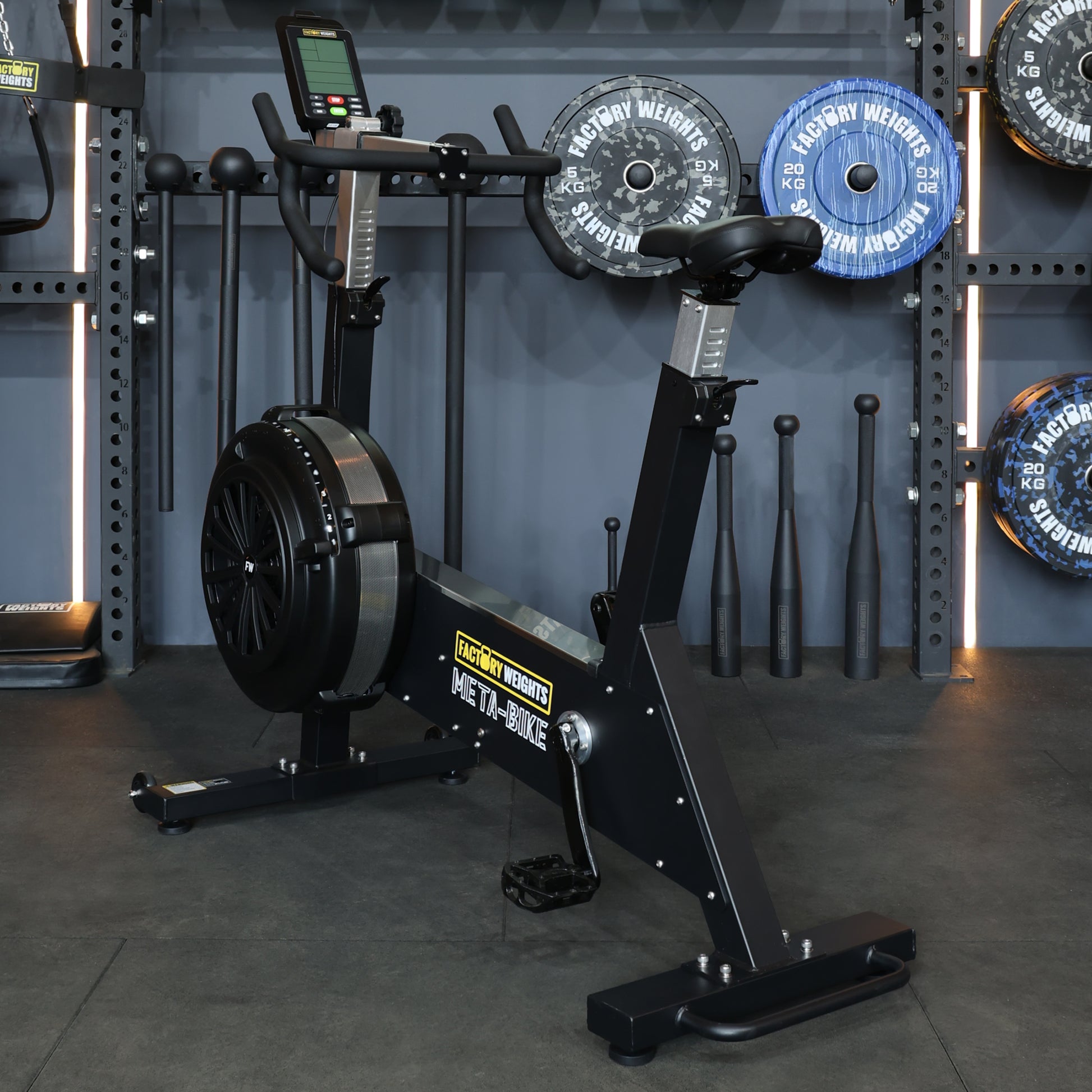 The Factory Weights Meta Bike is the latest innovation in stationary bikes. Perfect for Short HIIT sessions or longer endurance work the Meta Bike is the ultimate tool to enhance your conditioning. Suitable for home or commercial use, this exercise bike is designed to endure the rigours of the most demanding training environments. Featuring the latest state of the art Factory Weights Meta Monitor to accommodate multiple training styles and functions. It also features bluetooth connectivity and multiple resistance settings.