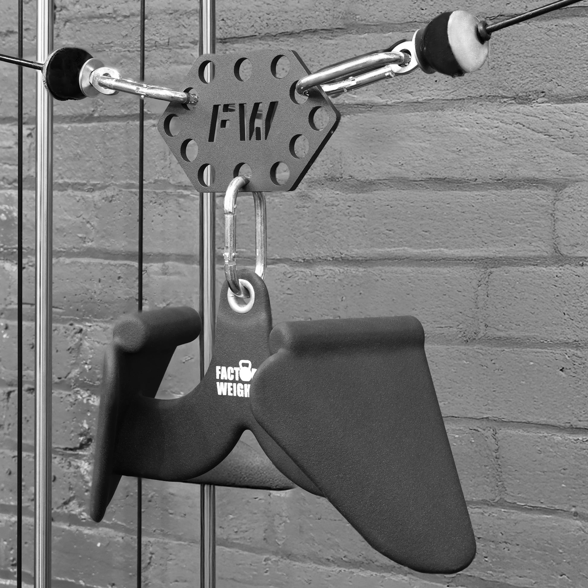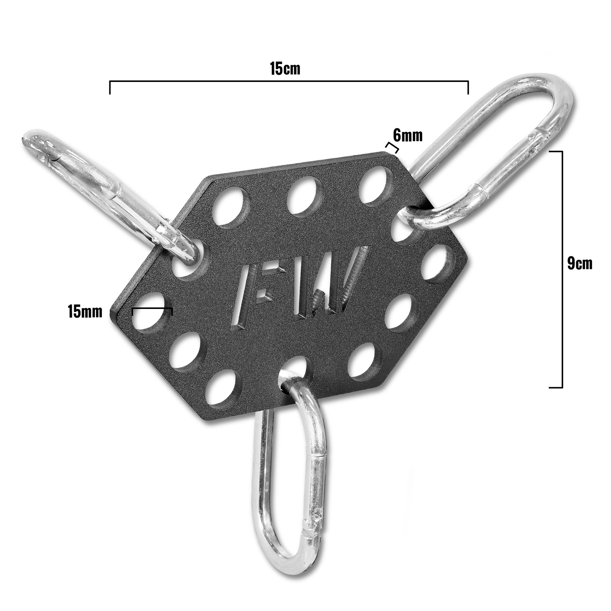 The Factory Weights Cable Connector Attachment is designed connect 2 cable stacks together to be used with cable attachments. The multiple holes allow users to set the best position for the cables and attachments for an enhanced workout. Perfect for dual cable machines to get the power of both your stacks together! 3 carabiners included for easy and quick links to cable attachments like lat pull down bars or low row handles.