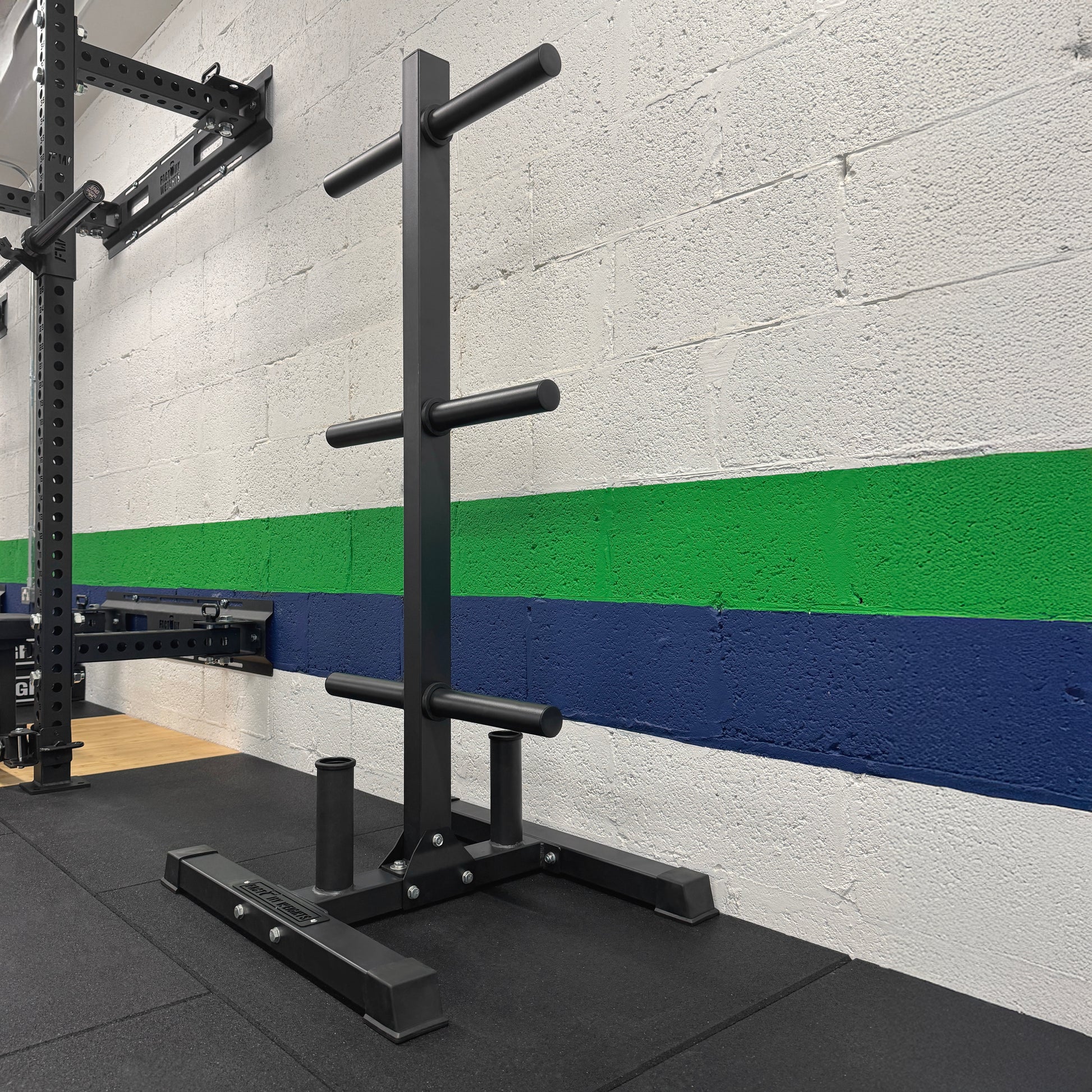 This weight storage system makes it easy to keep your home gym organized. The six horizontal storage poles provide plenty of space for standard and Olympic weight plates, and the 2 Olympic barbell storage spaces keep your barbells safe and secure.
